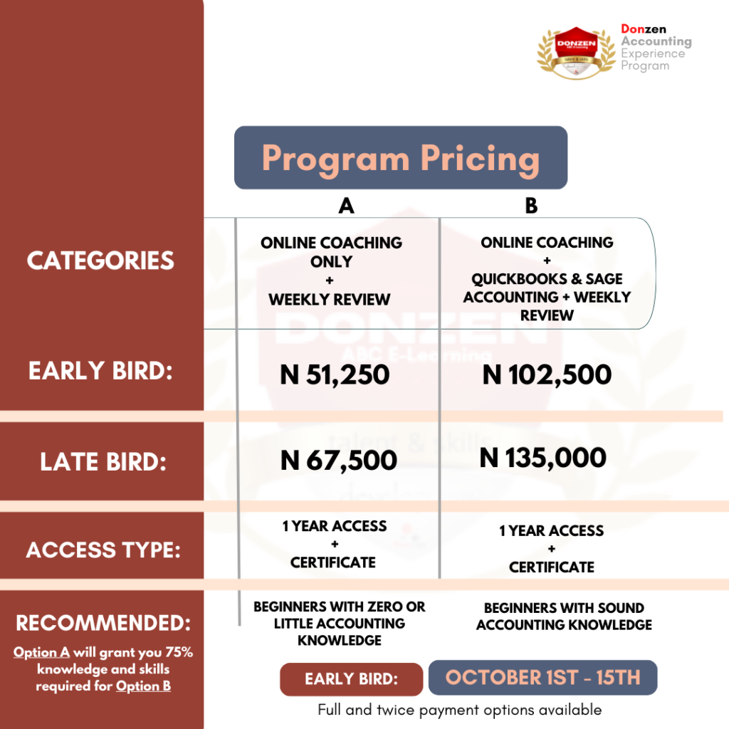 The Donzen Accounting Experience Program is a 30-Day Online Accounting Training and Certification Academy designed to equip you with essential accounting skills applicable in any professional setting.